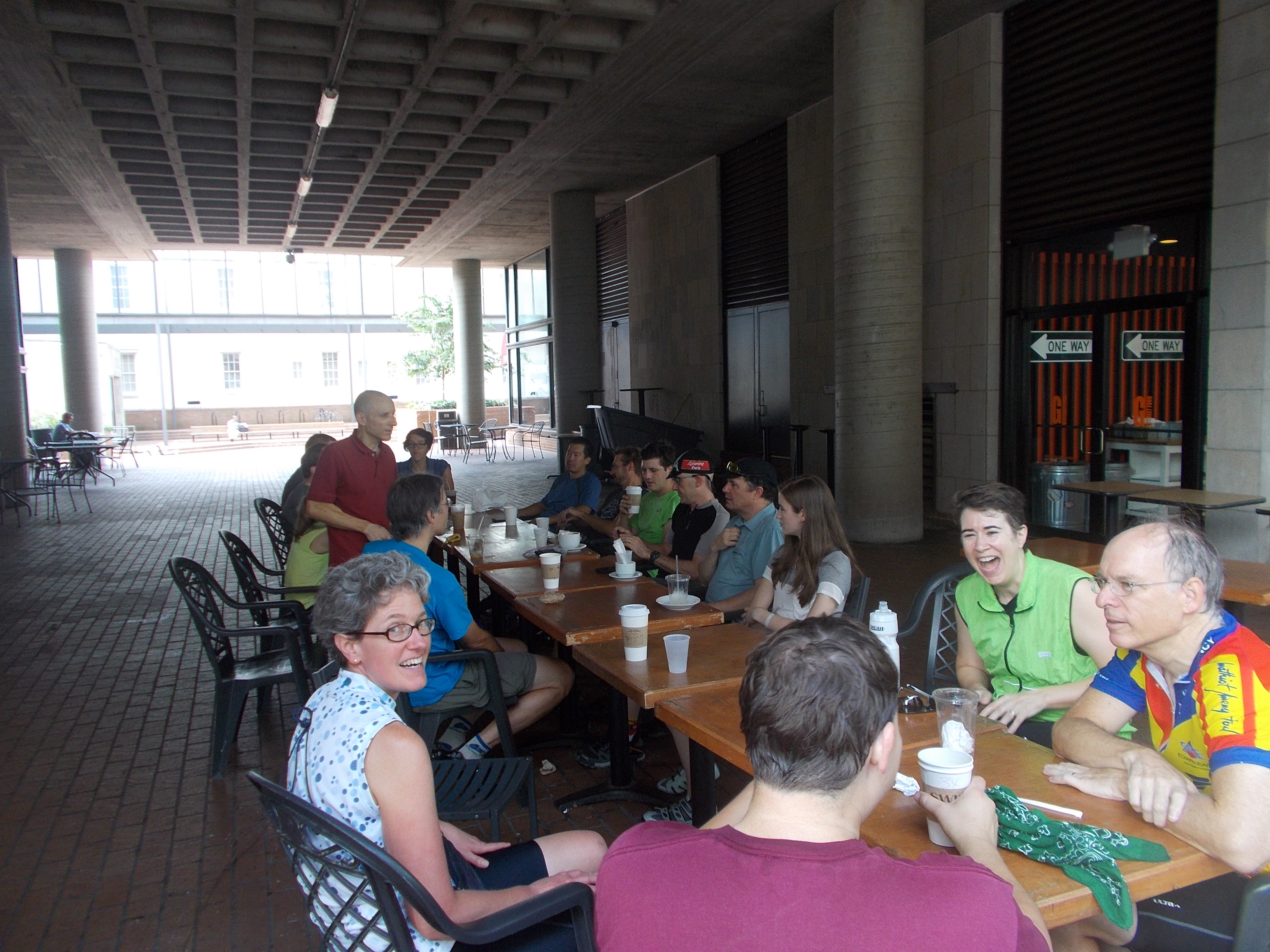 The beer was pretty good (I had a Kolsch) but the coffee was what most of us really craved. I drank four cups. We ate a leisurely lunch and watched as the rain finally stopped. Somewhat drier we headed back to the W&OD and our next destination Port City Brewery in Alexandria.