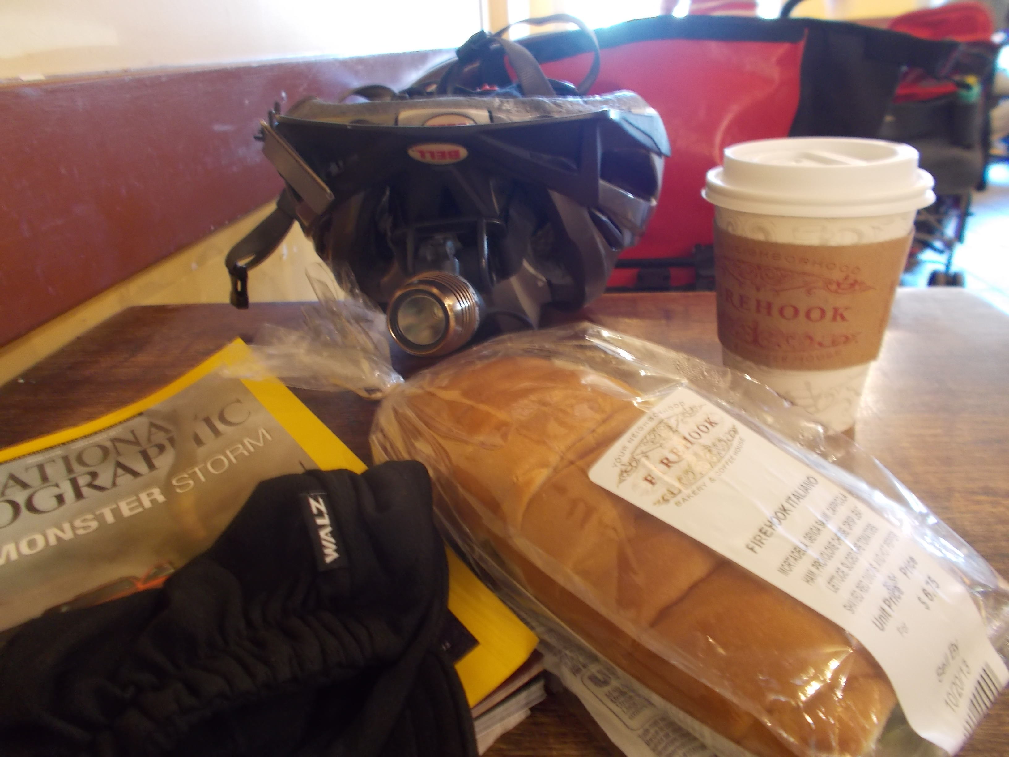 So you’d think I’d take the day off the bicycle. Think again. I decided to go for a short ride to get some coffee and add to my coffeeneuring madness. So I hopped on Big Nellie and made my way ever so slowly to Old Town Alexandria. My left quadricep felt like lead. The was no elasticity to it for most of the trip. Twas a struggle (Twas?), nut I made it to Firehook Bakery on Union Street in the heart of OldTownLand. I didn’t have high expectations for the coffee but I was pleasantly surprised by the French roast that I had. I also consumed an Italiano sammich. Not half bad. I’ll have to remember this place for future refuelings.