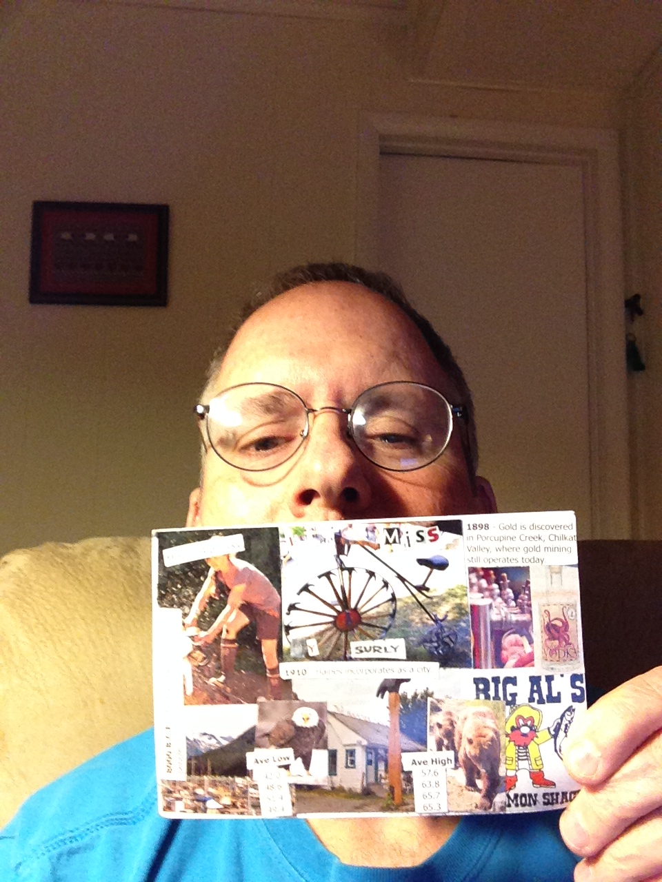 The Great Alaskan Fritter caper was a rousing success. I should have known that Rachel would respond in kind. Today, I received a postcard from her. I didn’t see it coming so it was a pleasant surprise. Here’s the front showing the interior of the Hammer Museum.