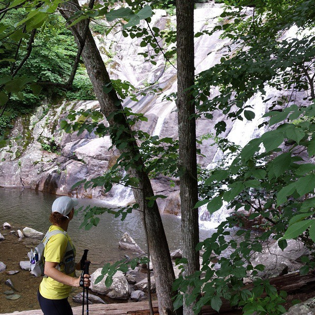 Usually Kirstin and I ride bikes together. when we ride, I’m usually riding much slower than usual. Her name online is Ultrarunnergirl for a reason: she does long runs usually offroad. I think of this as high speed, long distance hiking. So yesterday, the hiking shoe was on the other foot as she took me to White Oak Canyon in Shenandoah National Park for a day of hiking.