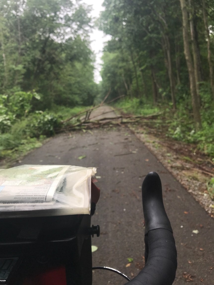 I didn’t see anyone for ten miles then I saw some riders with event numbers on their shirts. Soon after a black van pulled along side me. It was a local bike shop doing support for the event. The woman and man and I talked for a while. She gave me some energy food things that tasted like marguerita mix. Trail angels show up when you least expect them.