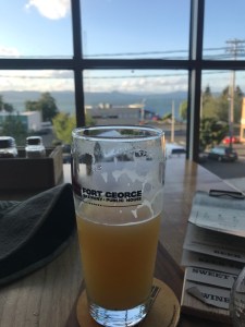 I sit in the Fort George brewery drinking beer, eating pizza, and watching the white caps on the Columbia River. (Thanks again to Ryan for the suggestion.)