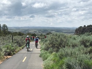 We parted ways. Bill headed east. I headed west and jumped on the Red Canyon Trail, a paved bike trail along the two lane highway.