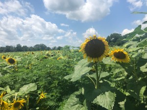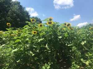 I walked around two of the three sunflower fields. The sunflowers seemed to be in a state of morning with their head bowed. Still, from the proper angle, they put on a decent show.