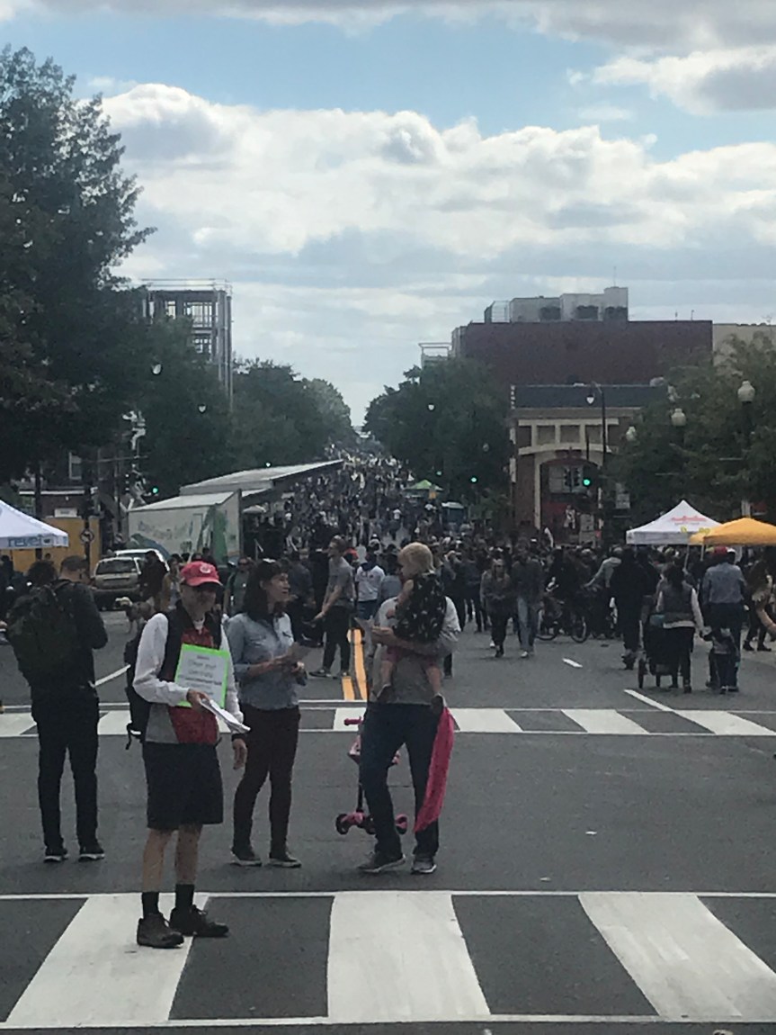 Yesterday, I rode 19 miles to the first Open Streets DC event. Three miles of Georgia Avenue, a major north/south road, were completely closed to motor vehicles from 10 a.m. to 2 p.m.