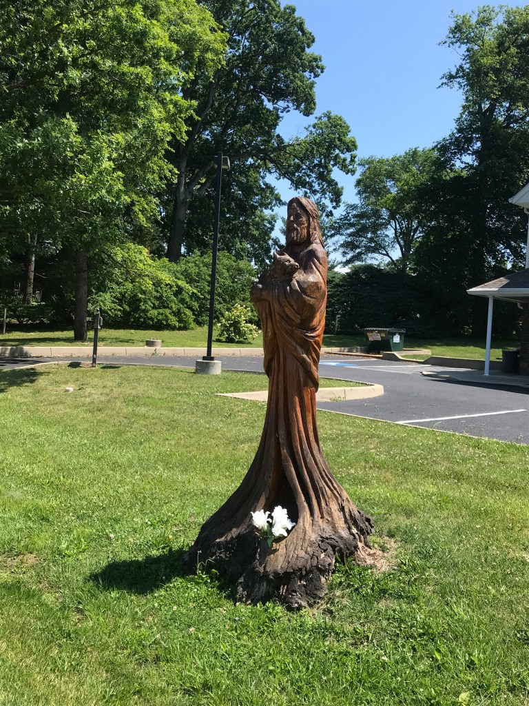 I rolled into Emmitsburg on the Maryland side of the border and, after missing a turn, found myself cruising through Mount Saint Mary’s College campus. The campus is situated along US 15, a four lane divided highway. But for this misfortune, the campus would get an enthusiastic thumbs up from me. It’s stone buildings practically intoned Catholic academia. It’s metal sided gym, really an oversized quonset hut, somehow amusingly fit in. The seminary building to the rear up a hill was the crown jewel.