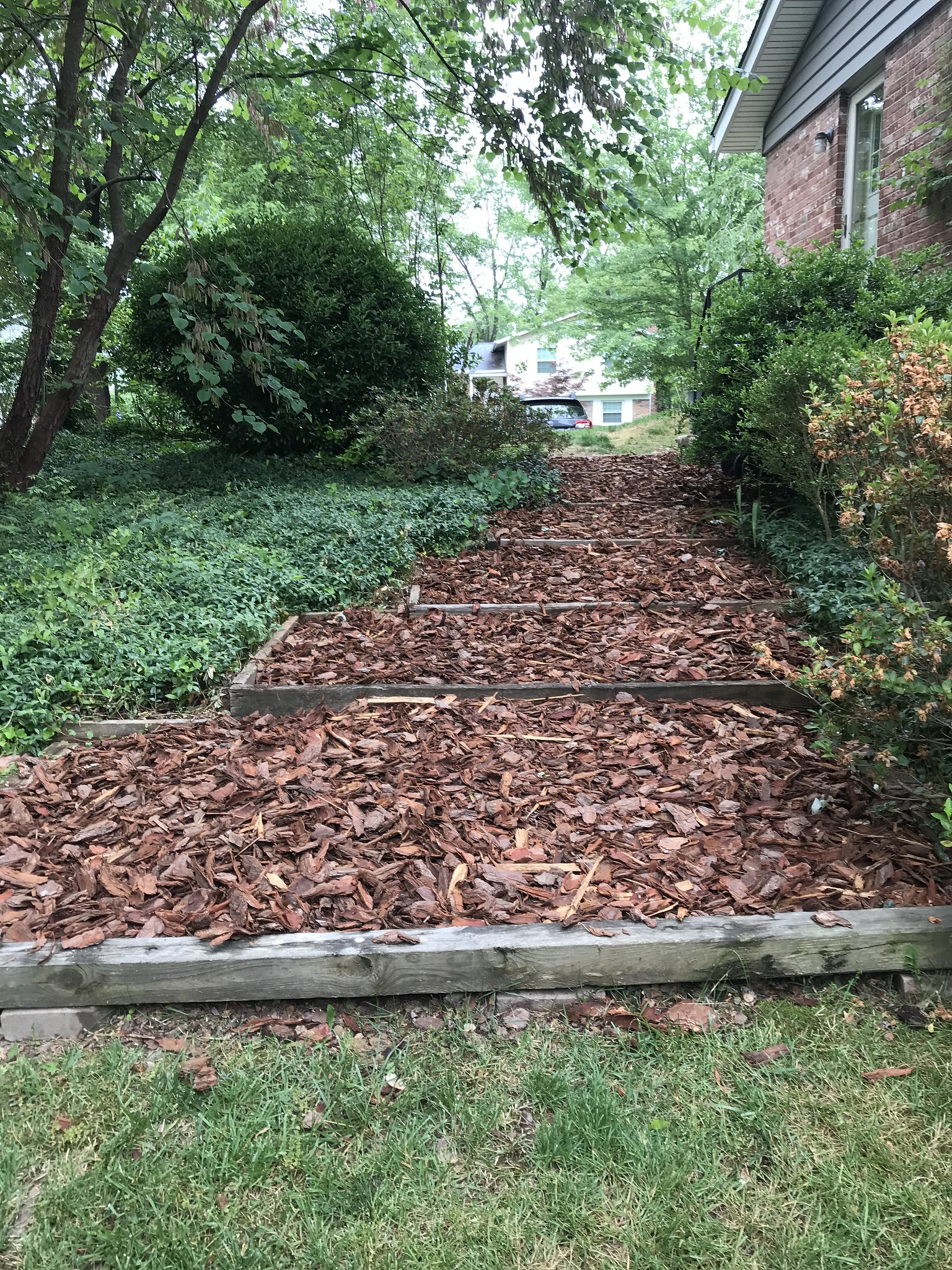 One downside to doing a series of long bike tours is that my yard became neglected. The backyard mysteriously started flooding. The lovely perimeter garden was a bed of weeds. The landscaped steps next to the house were a mess, The metal stoop at the side of the house had more rust than paint. And there were big muddy patches in various parts of our lawn from the removal of trees and some Russian olive bushes. In between bike rides, I attacked these tasks with mostly good results. Each task took two to three times longer than expected, mostly owing to my decrepit back. The yard is still a bit squishy after heavy rains, and one of the muddy patches didn’t quite take to seeding, but the rest came out as good or better than I had anticipated. I never got around to re-painting the shed, but there’s always next year.
