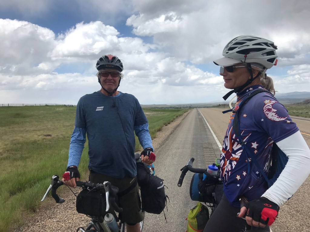 Turning north, we caught a tailwind to die for. Corey zoomed ahead. Dang. Mark pulled ahead of me but he stopped to talk to two eastbound TransAm tourists. We heard interesting things about Jeffrey City which we will ride through soon.