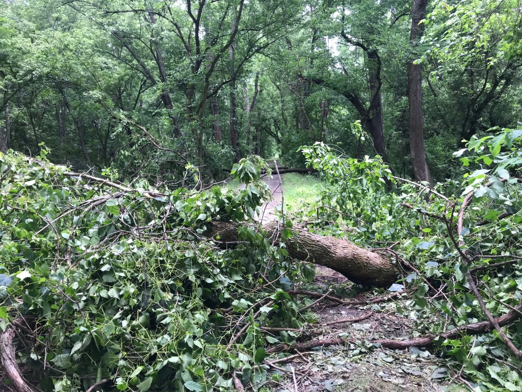 Back to back tree falls on the towpath