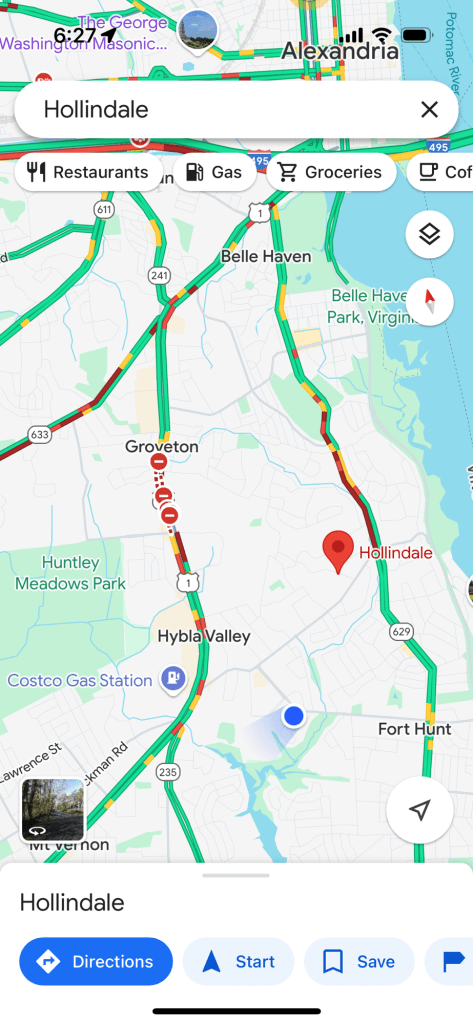 I crossed back into Virginia and took the Mount Vernon Trail and a connector trail to Fort Hunt Road and US 1. I turned south on Fort Hunt Road, a two-lane suburban byway. After a quarter mile a started passing a line of cars inching along for what turned out to be about four miles. Bumper to bumper. US 1 was closed by downed power lines and traffic was diverted to Fort Hunt. I felt sorry for the drivers as I passed car after car after car after car working their way back to Route 1. Sucks for you, folks. To their credit, the drivers stayed in their lane and out of the bike lane on Sherwood Hall Lane near my home.