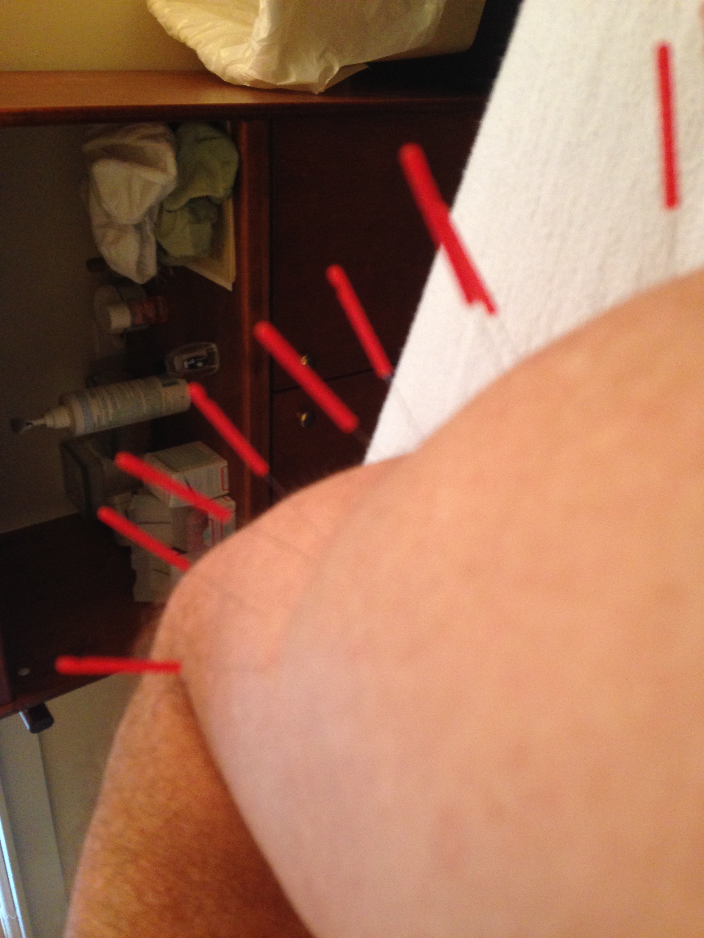 A word of warning about acupuncture, if you don’t want to look like a junkie, you might want to avoid acupuncture if you are on blood thinners.