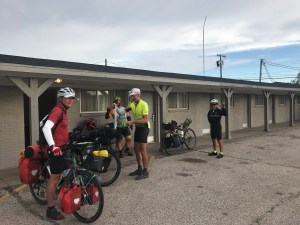 After a sumptuous dining experience at Subway, Corey, Mark, Sweet T, and I headed back to the hotel where we met Fedya, a Russian guy who began his cross country ride in North Carolina.