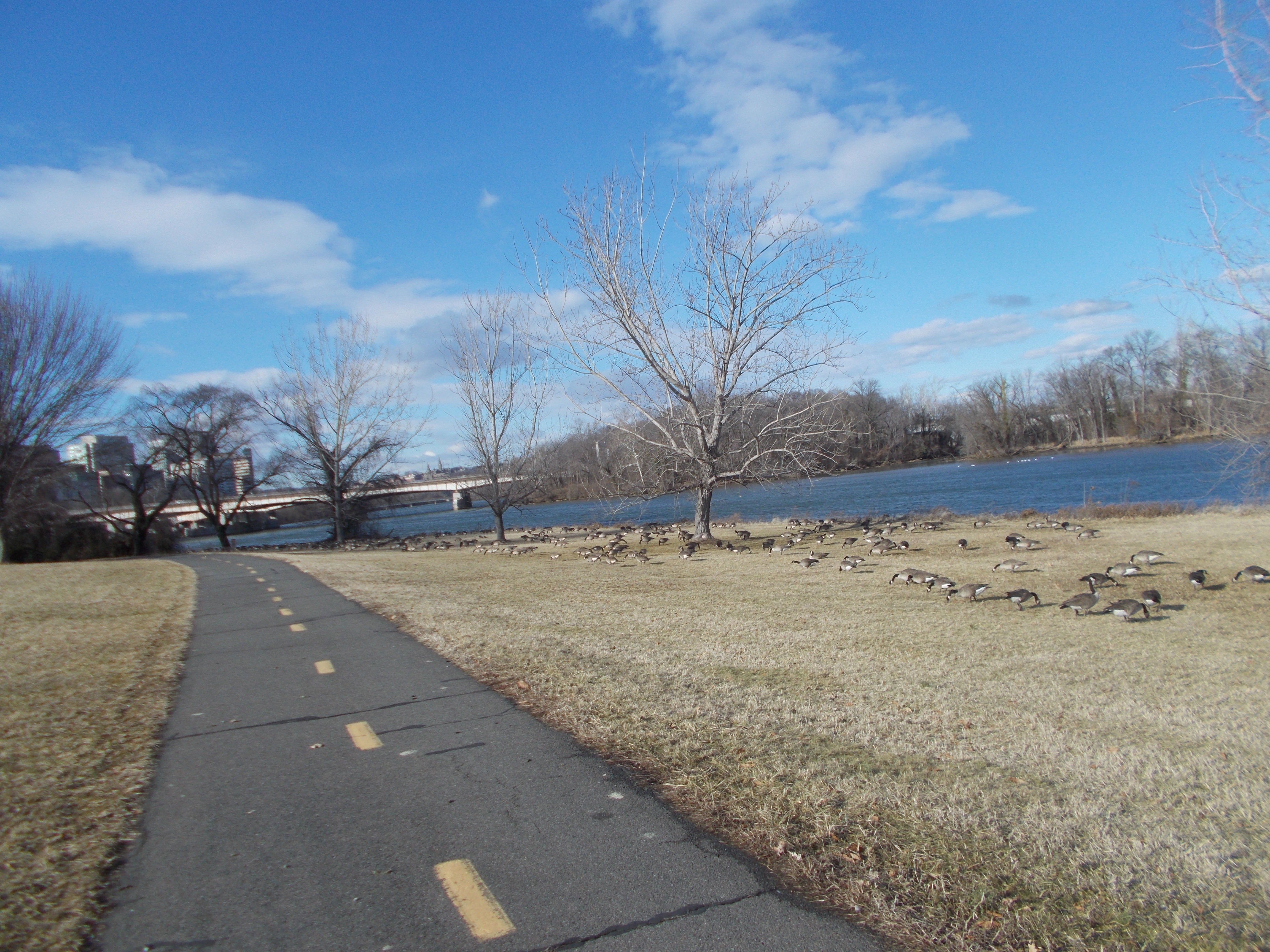 The ride home was truly lovely. For the first ten minutes it was light out. I warmed up immediately and was perfectly comfortable. Even better I was riding at my normal 11 – 12 miles per hour. Between the TR and Memorial Bridges I came upon hundreds of Canada geese. They posed for a picture then I did my best Charlton Heston and made them part.