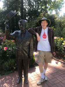 That’s Eric with the statue of the rose garden’s founder.