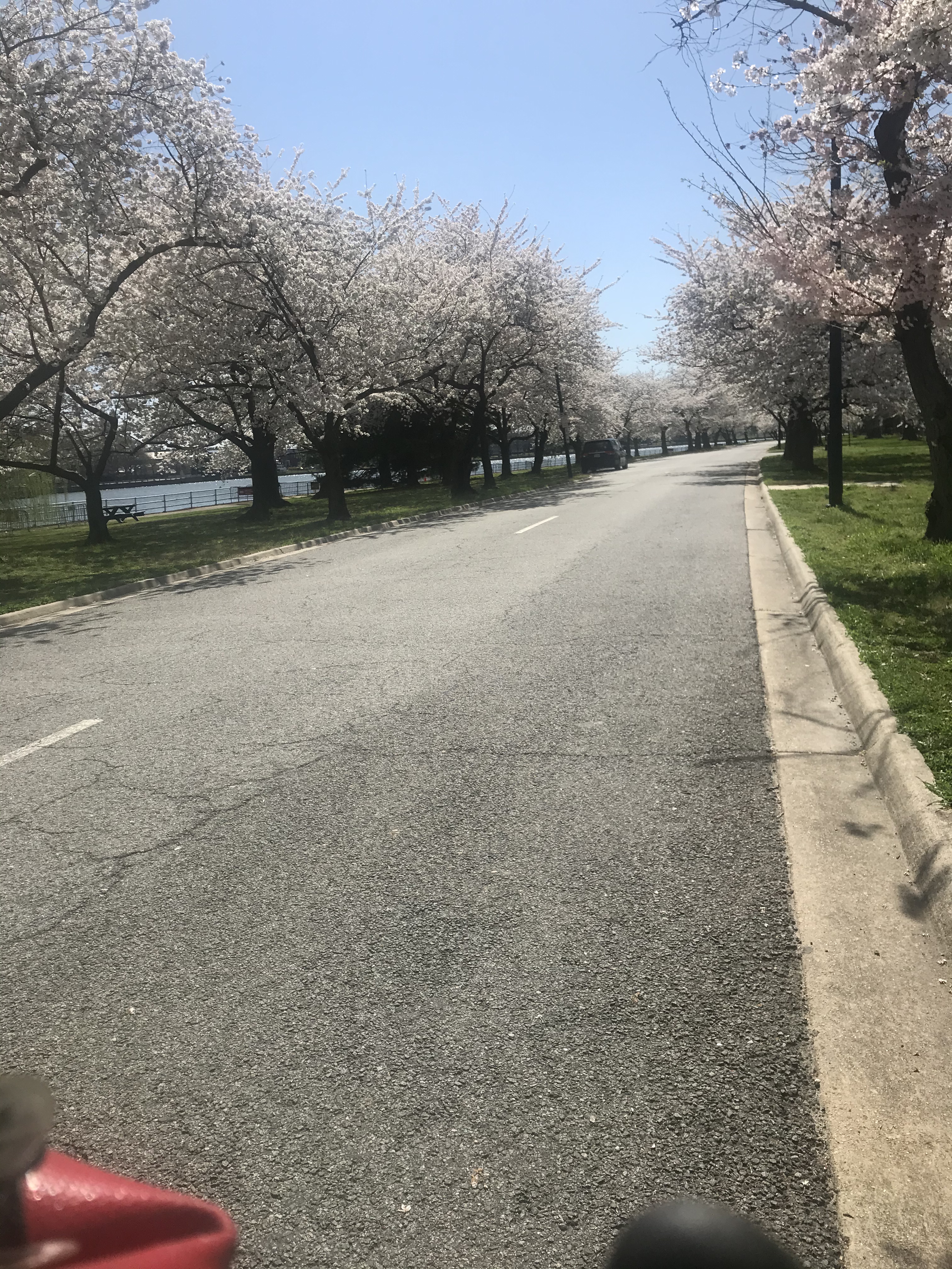 On Saturday, I rode to the Lincoln Memorial then back along the Potomac on Ohio Drive in DC. Once again I skirted the Tidal Basin. Now the trees were starting to put on a show in earnest. I managed 31 miles before spending the rest of the day weeding the garden.