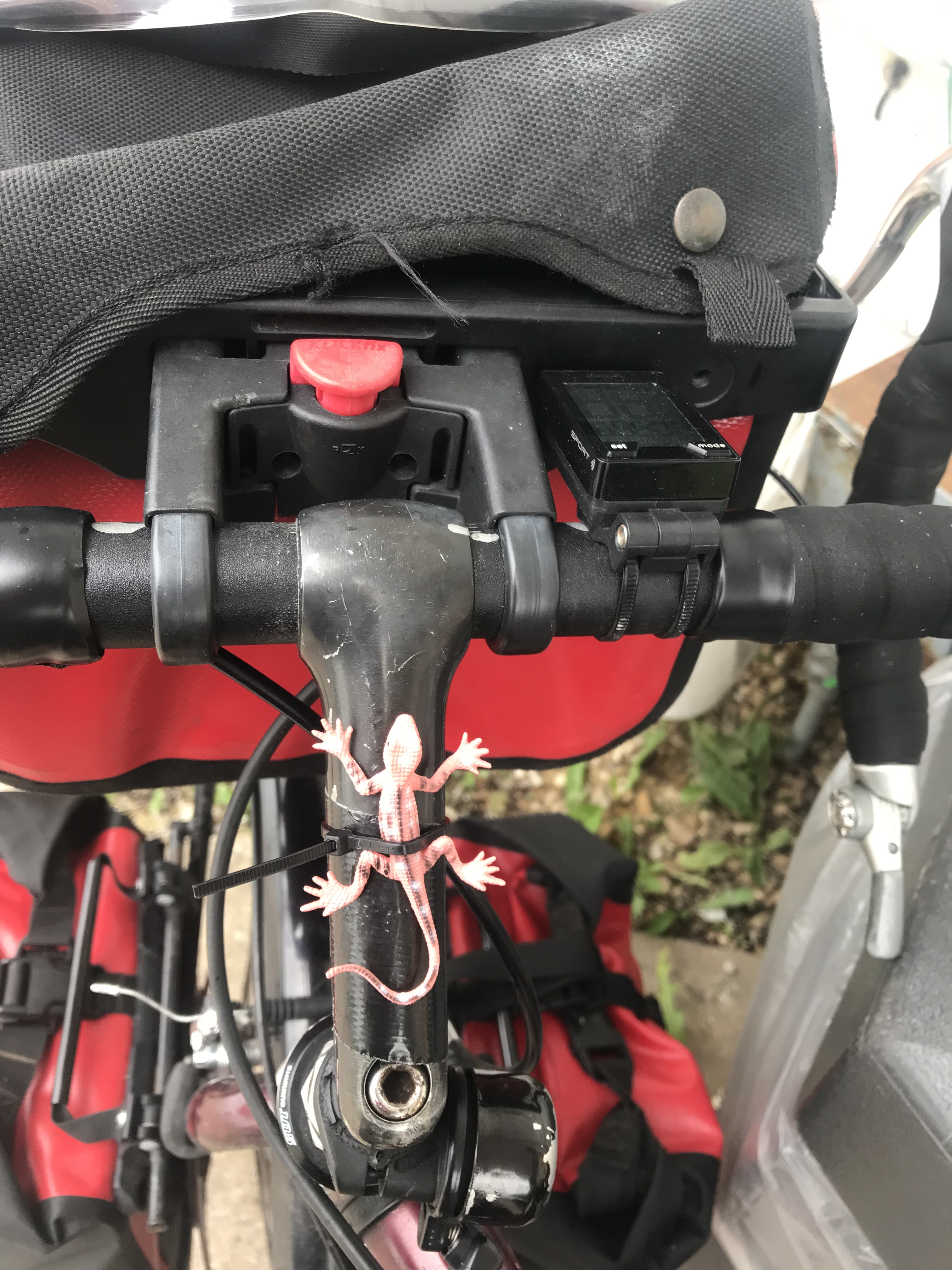 The store has a deli. It took me a few minutes before I realized that this was Lizard Lipps cafe in which I had eaten in 2019. All TransAm riders get a little plastic lizard to zip tie to their bikes. I still have my 2019 lizard on my stem so I’m going to have to get creative with the placement of the new one. I also signed the guest book. I looked up my previous signing and there were the entries of our five man TransAm posse. (Two sped ahead after a couple of days.)