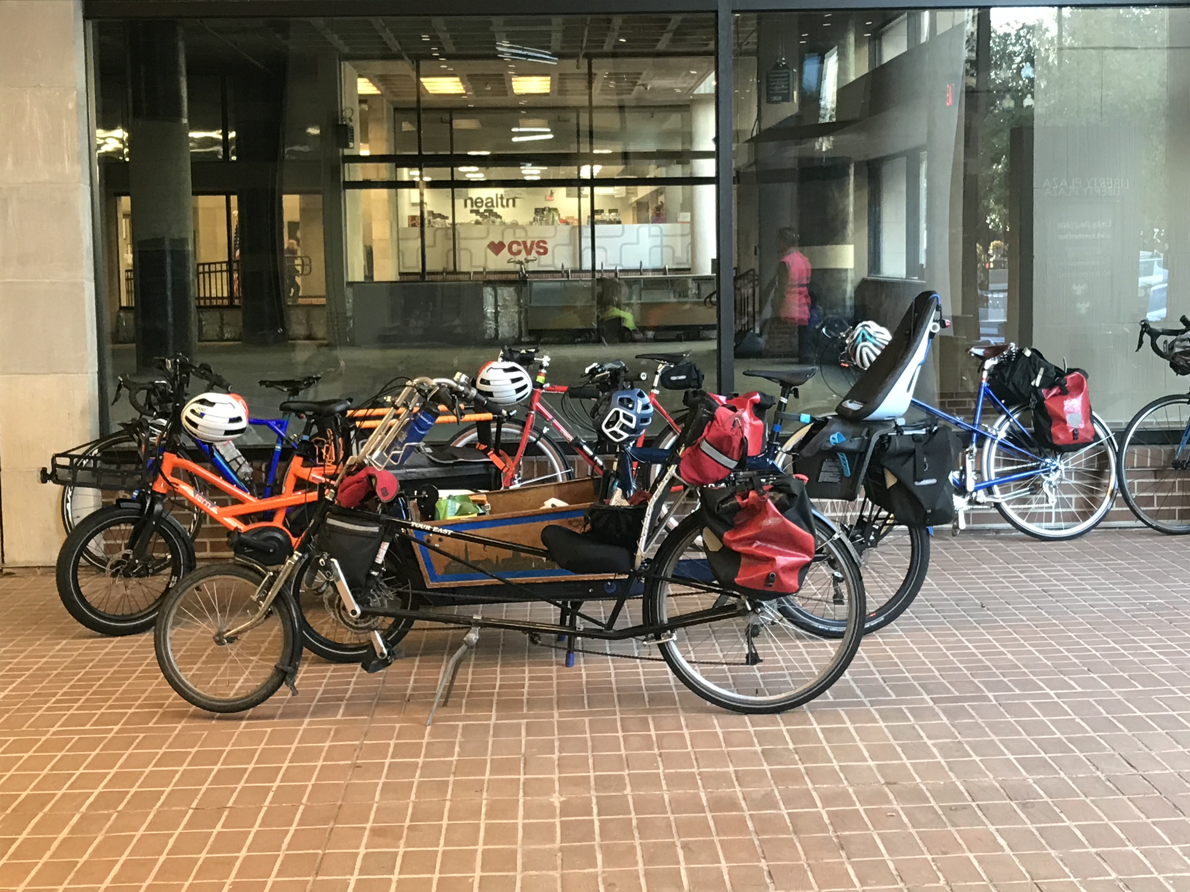 I spent the following morning sealing big cracks in the concrete stairs leading to our front door. I rewarded myself with a 30-mile ride on The Mule. After that, I converted my steed to touring mode by removing the Carradice saddle bag and selecting four panniers for the trip.