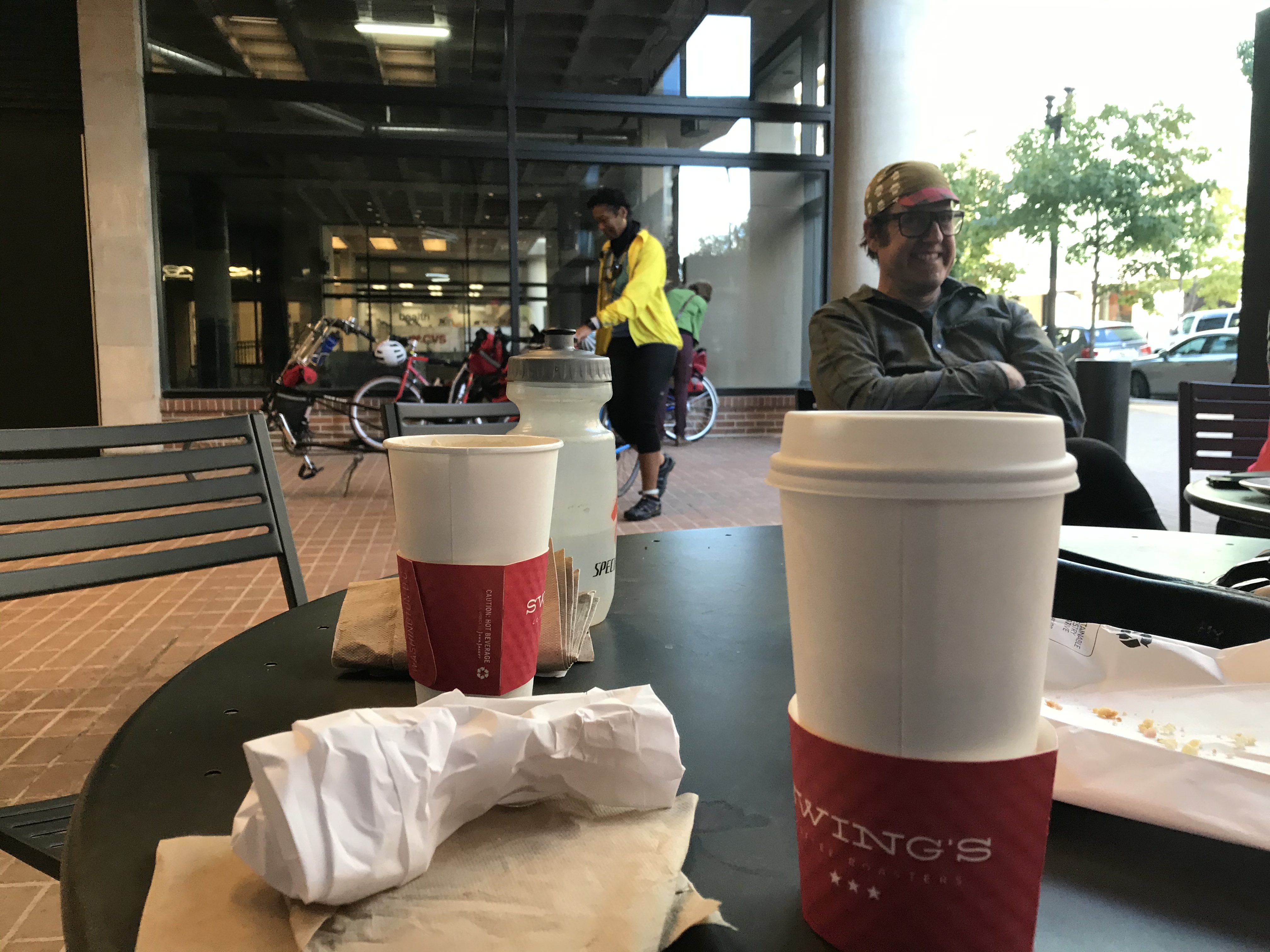 Friday was Bike to Work Day. I didn’t sign up because I thought I’d be gone on tour. Instead I rode to Coffee Club (only two others came) and then as an afterthought picked up a t-shirt at a pit stop. Then I rode to REI and bought a small bottle of castile soap, something I use often on bike tours. Three big takeaways from the day. E-bikes are booming in this area. They’re the new big thing. On the way to DC, I was passed in Old Town Alexandria by an electric school bus. How strange to hear the whine of an electric motor (or maybe the drive train) as the bus accelerated from a stop. Quiet, cleaner, faster. Works for me. Finally, I cheated a bit and rode the re-built bridge through Dyke Marsh on the Mount Vernon Trail. The new bridge is wide and a bit higher that the old one. Mostly, it’s smooth, a welcome change from the beat up old wooden bridge boards.