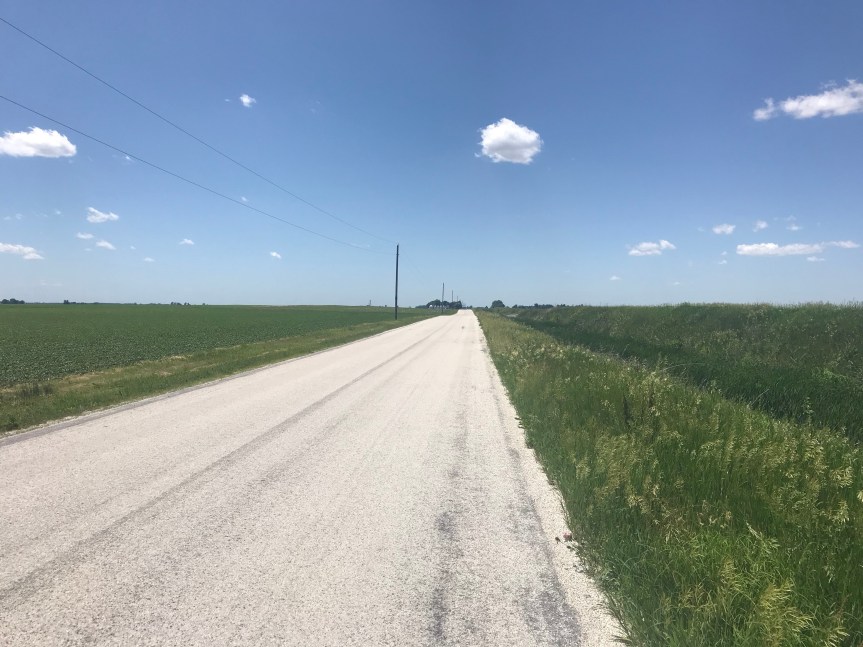 We, Corey, Mark, and me, bid farewell to our hosts and headed west into an unexpectedly strong headwind. After 5 miles we turned north and had little relief.