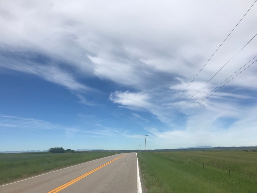 As I dismounted I suddenly felt lightheaded. Until I got off the bike I was seriously considering riding on to Fort Benton to take advantage of the perfect riding weather. My spinning head has other ideas.