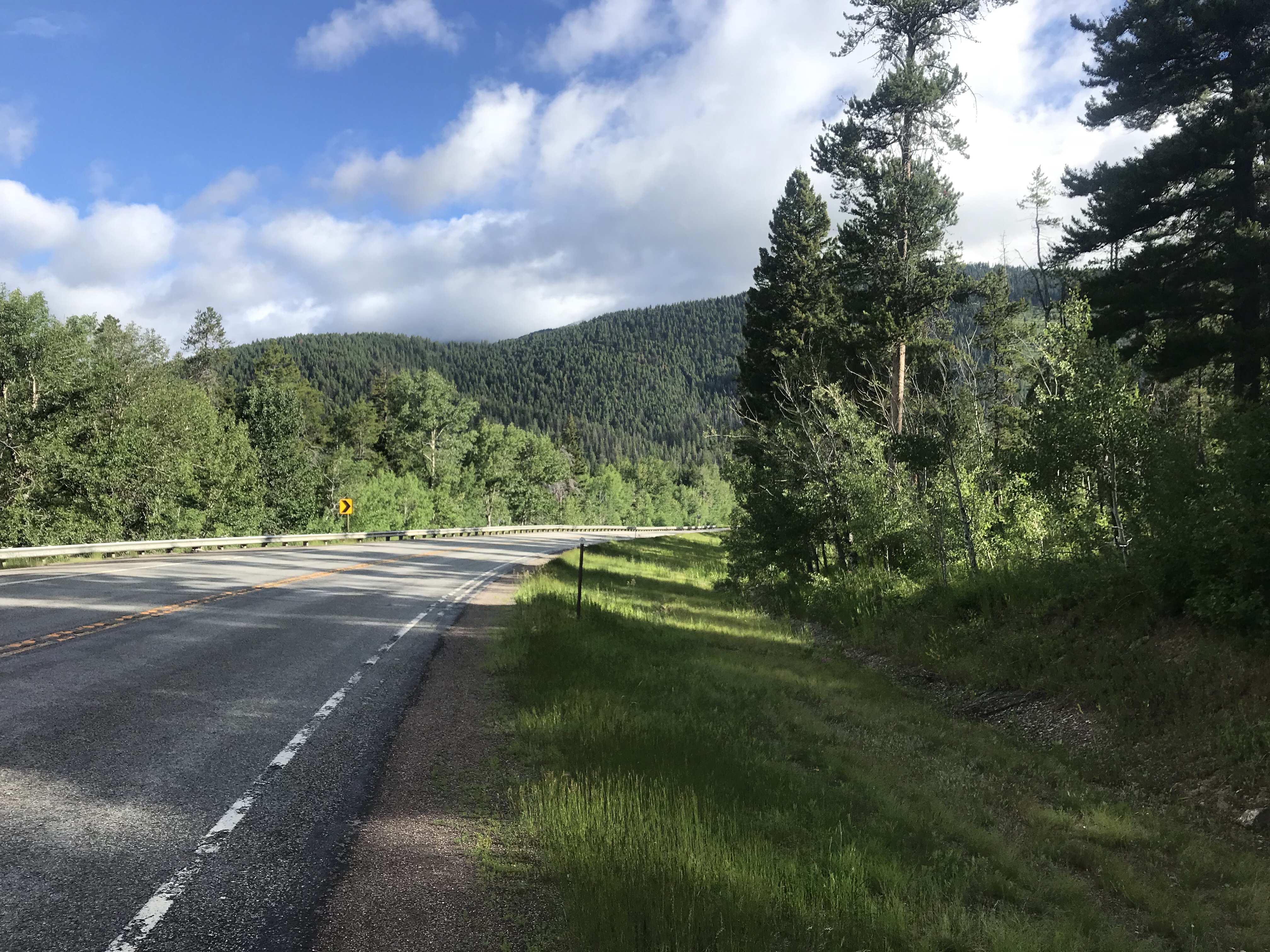 The mountains around us on this side of the pass were densely forested right to the side of the road. I kept expecting a bear to emerge. I’m glad that didn’t happen.