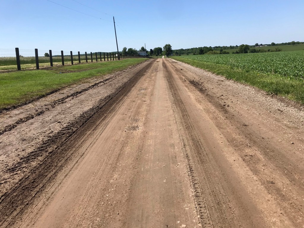 I crossed into Kansas without the coveted Welcome sign. I wasn’t complaining though since the road went from dirt to asphalt.