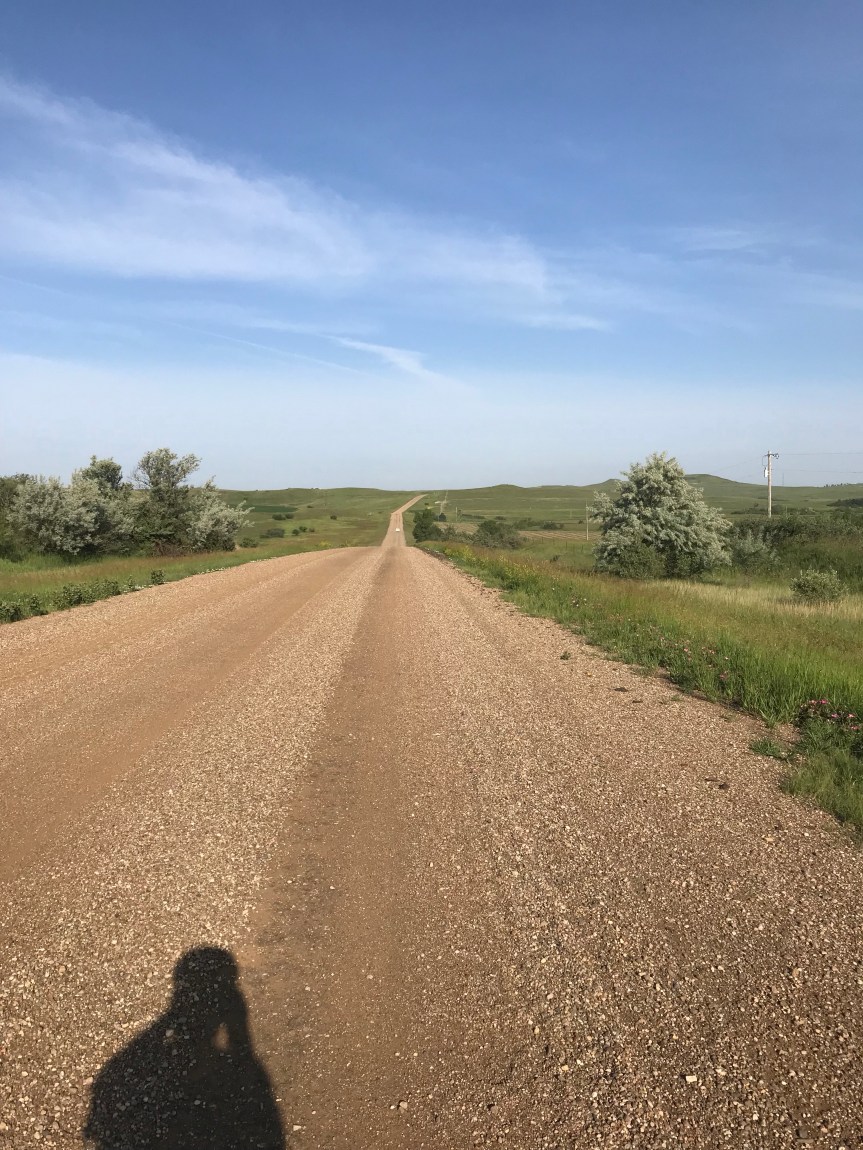 The dirt road was a little bumpy. I was concerned about breaking a spoke so I took my time. The scenery was splendid. Whoever said North Dakota is boring got it totally wrong.