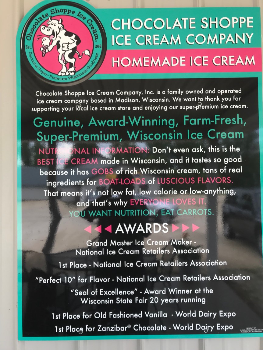 Then I spotted the sign for ice cream. “You want nutrition, eat a carrot.”