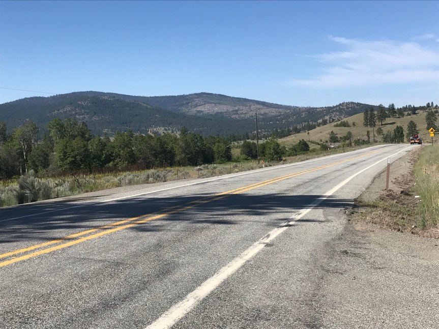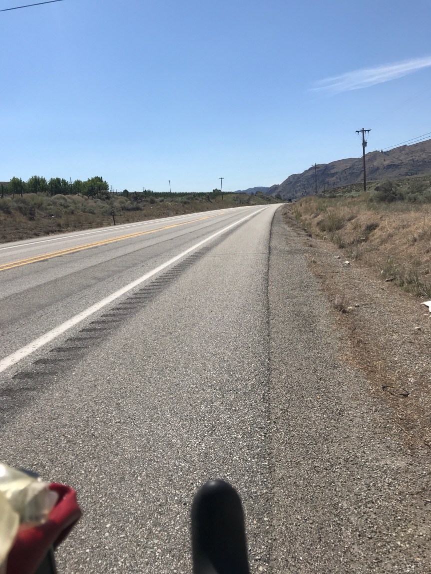 I finally reached East Omak. For the first time in memory, I saw homeless people. Crossing the river to Omak, life didn’t seem a whole lot better. The final four miles into Okanogan were mercifully flat. The town park had camping and there were plenty of people camping there. No bikes though. It was also 95 degrees. My gut and my broiling skin convinced me to get a hotel room. I’m at a low Quality Inn. Weak AC and a broken washing machine. Well at least it has free breakfast. (My money’s on stale cereal.)