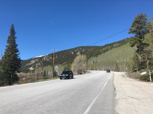 There were hundreds of Ride the Rockies participants crawling up the mountain. I dropped from 11,300 feet to 8,450 feet in ten miles. All the curves were banked and the road was clear of debris. And, yes, I rode in the middle of the lane. I was passed four times on the way down.