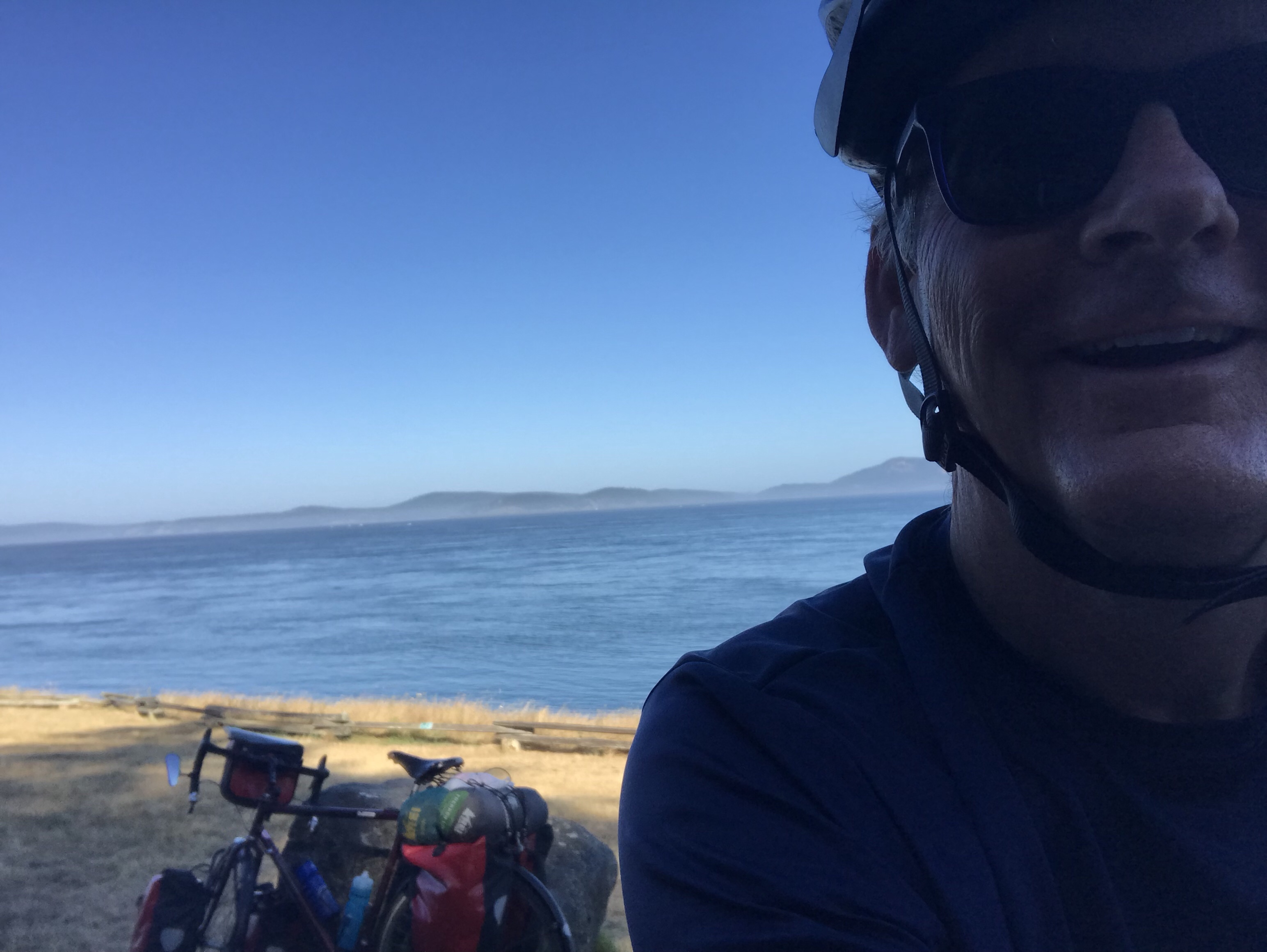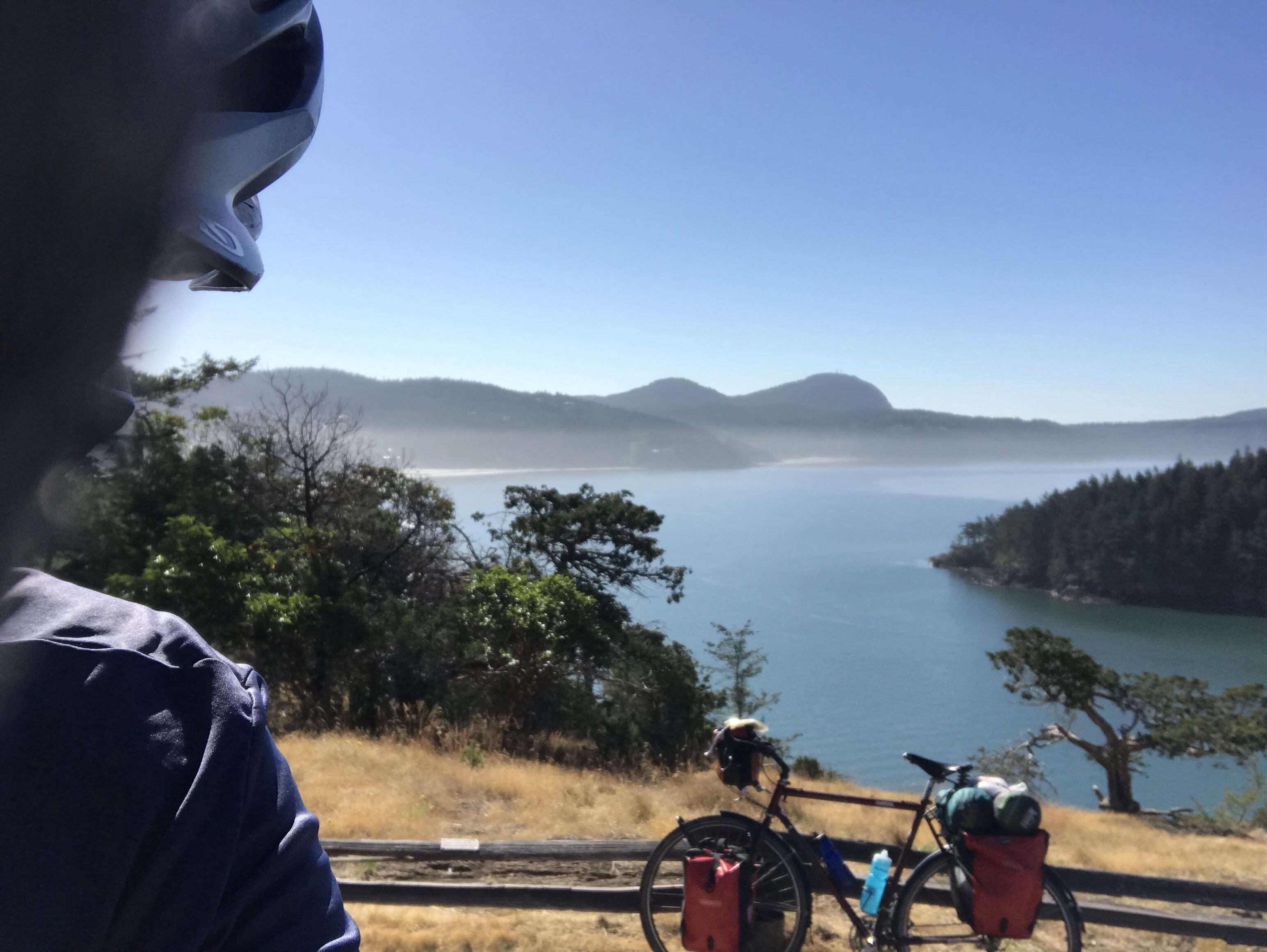 She was right. There were views of the islands and, I think the northwestern edge of the Olympic Peninsula. It was blue, the trees were green, and the air was fresh. The loop road was steep in parts so my granny gear got a bit of a work out.