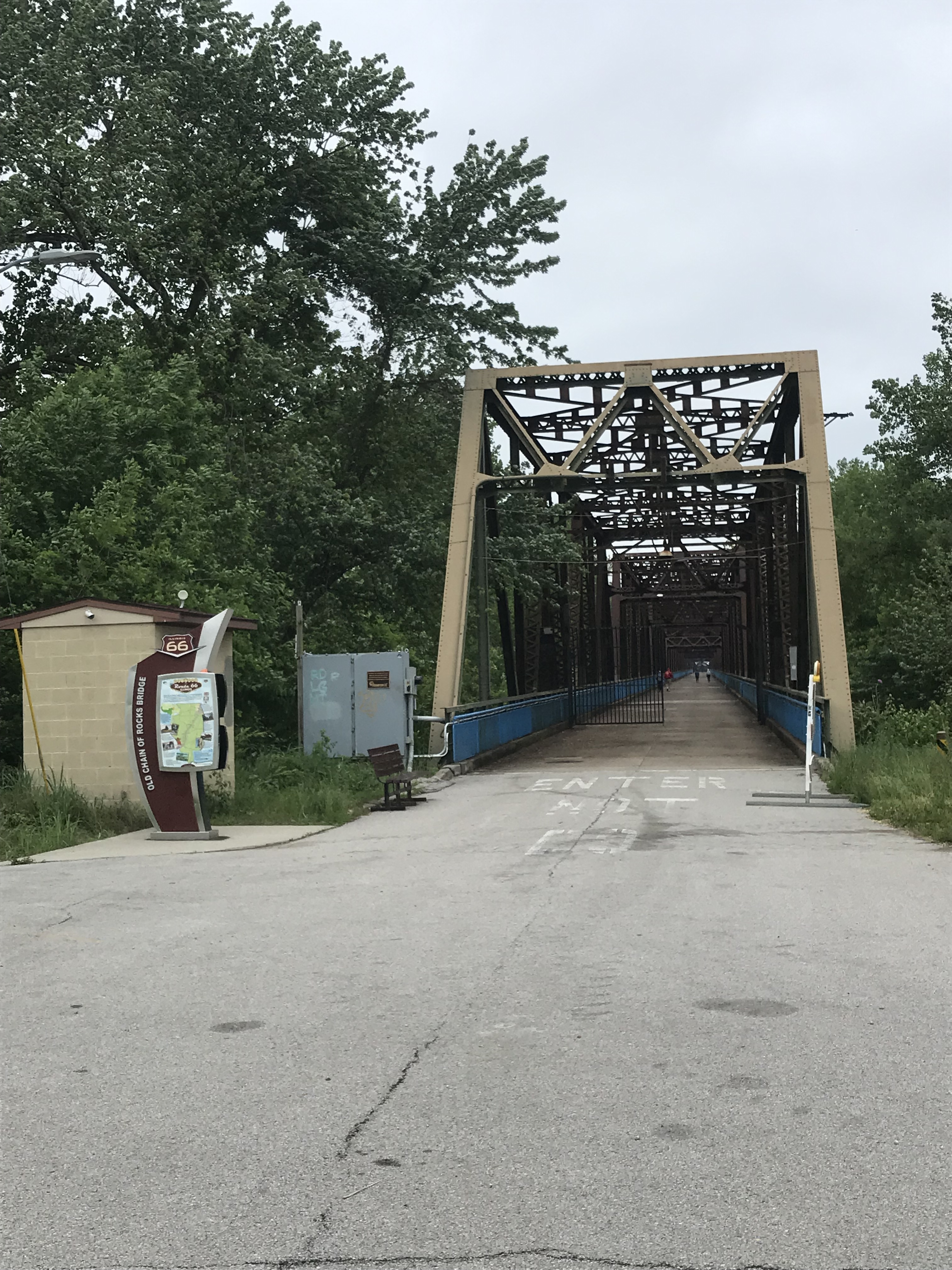 The river and a connected canal looked bloated as I rode across the old Route 66 bridge which is now closed to motor vehicles.