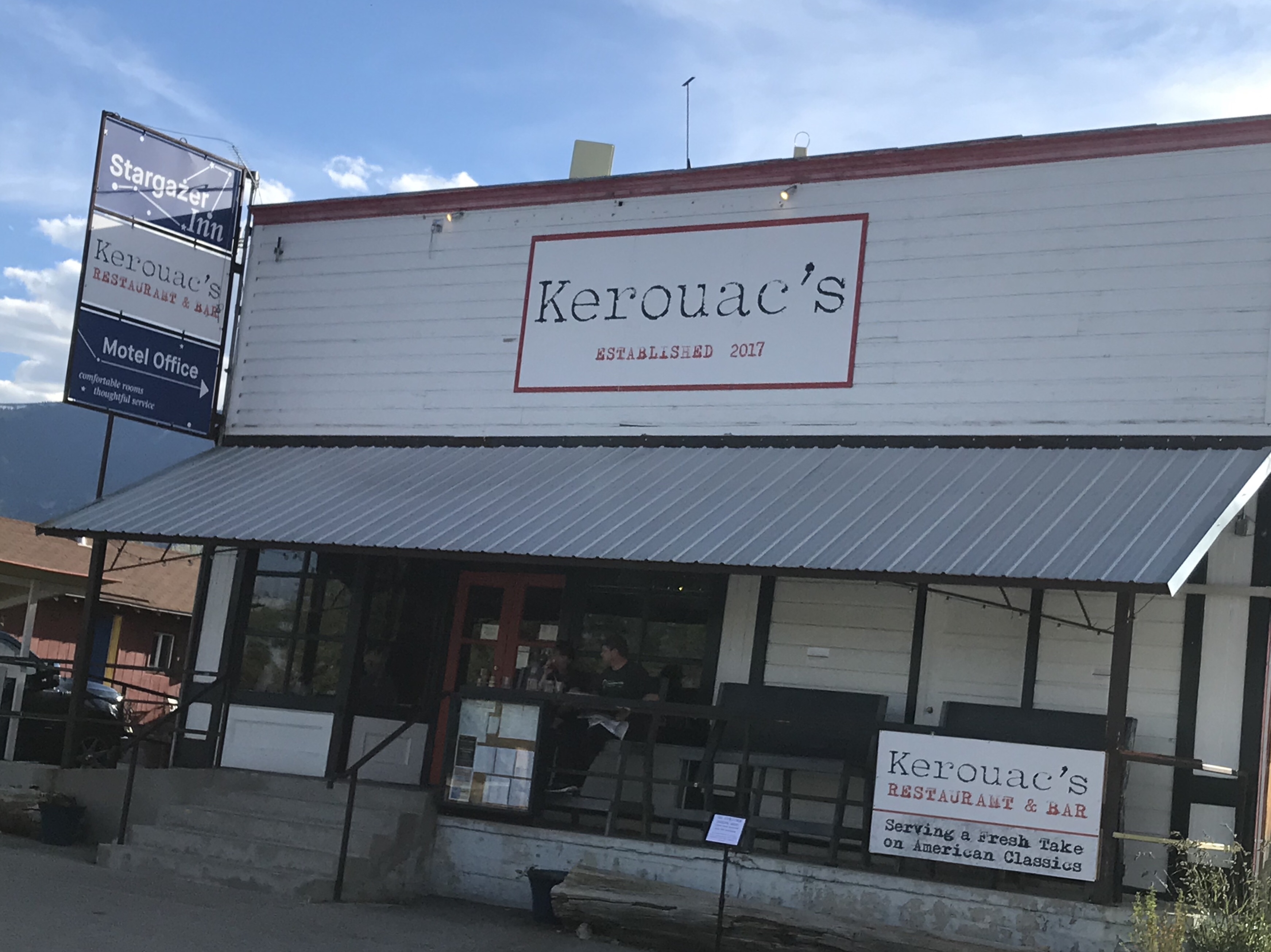 I ate dinner and breakfast at Kerouac’s one of two restaurants in town. It had a limited menu for both meals, cold beer (at dinner) and a very cool atmosphere (background music included lots of mellow tunes including one by XTC that I’d never heard). Pricey? Yes. But a pretty good find in a dusty town with a population of 68 people.
