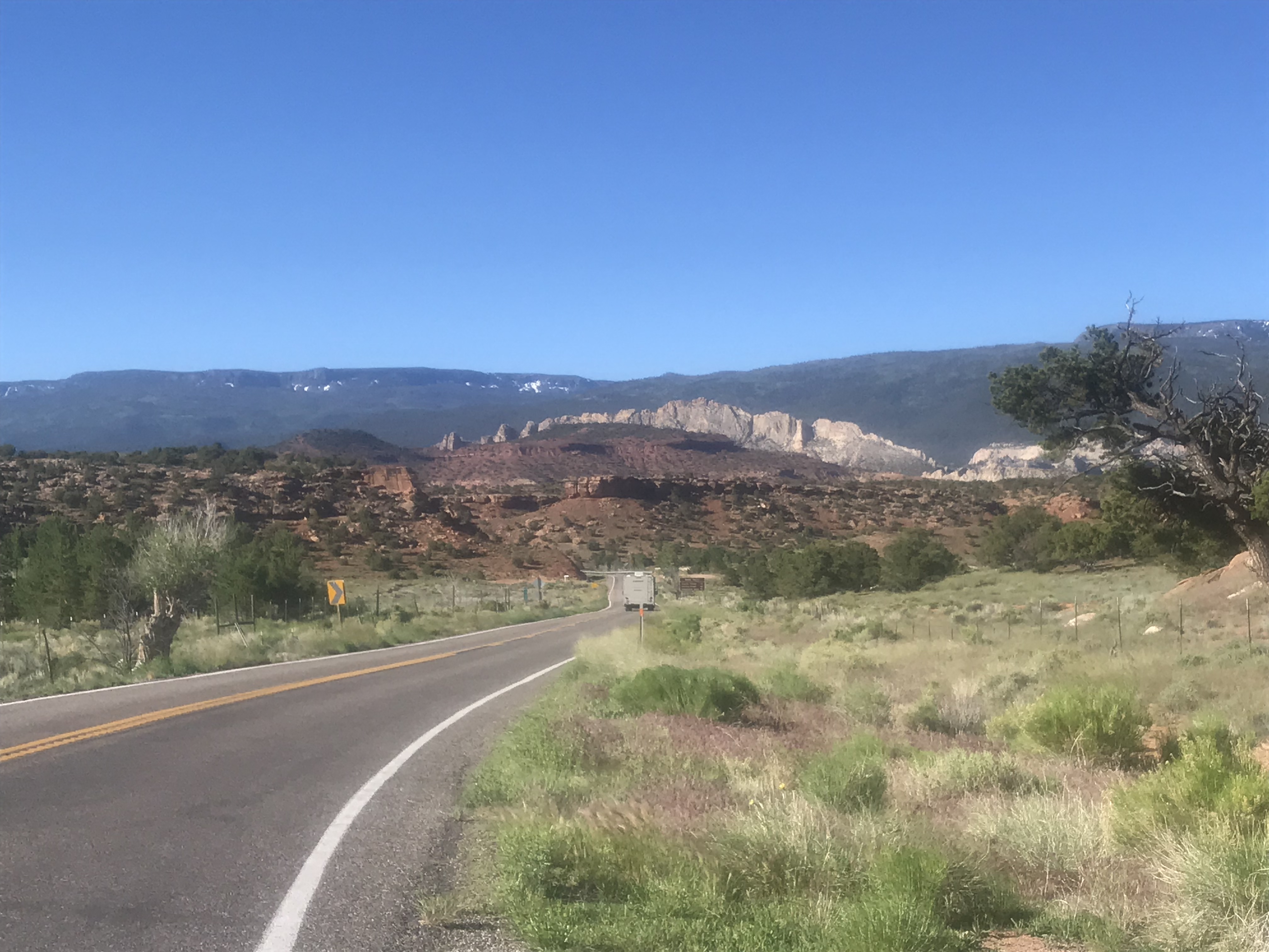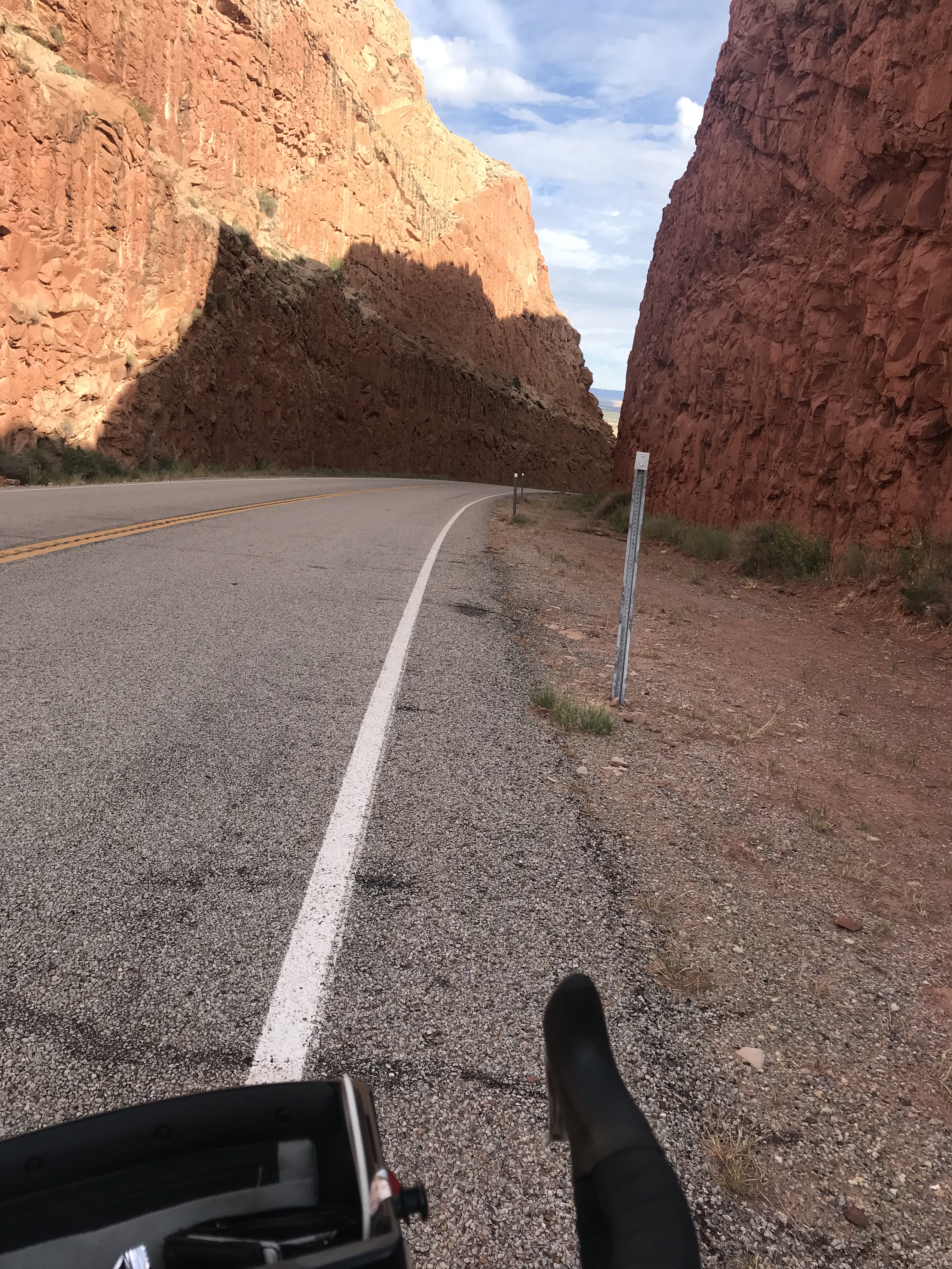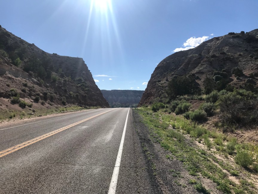 Back in the pavement I flew downhill for 16 glorious miles. I passed the base of the red rock cliffs of the Breaks and followed the two lane highway as it curved around incredible, massive, multicolored rock formations. I’d have taken some pictures but I was trying not to die.