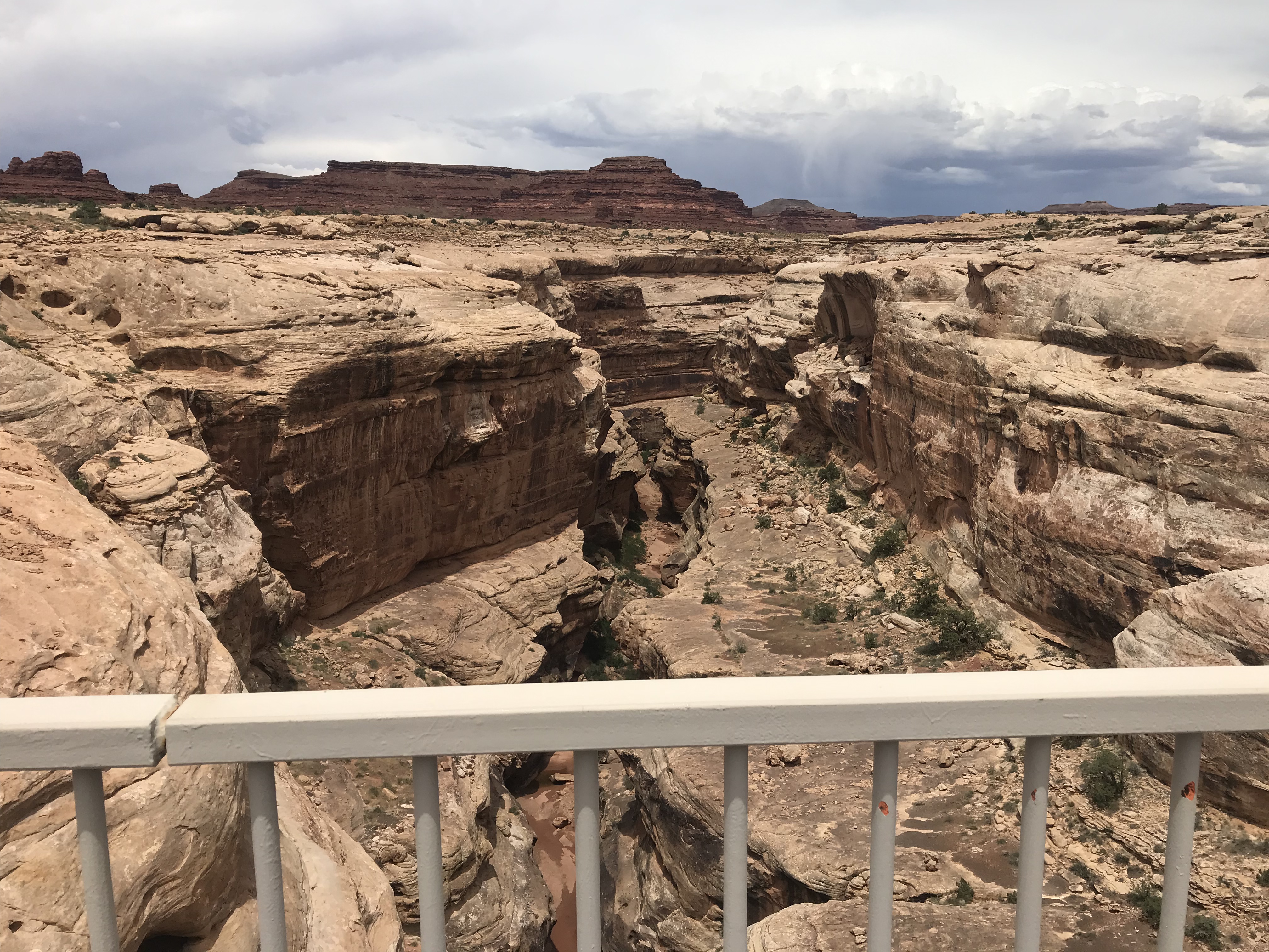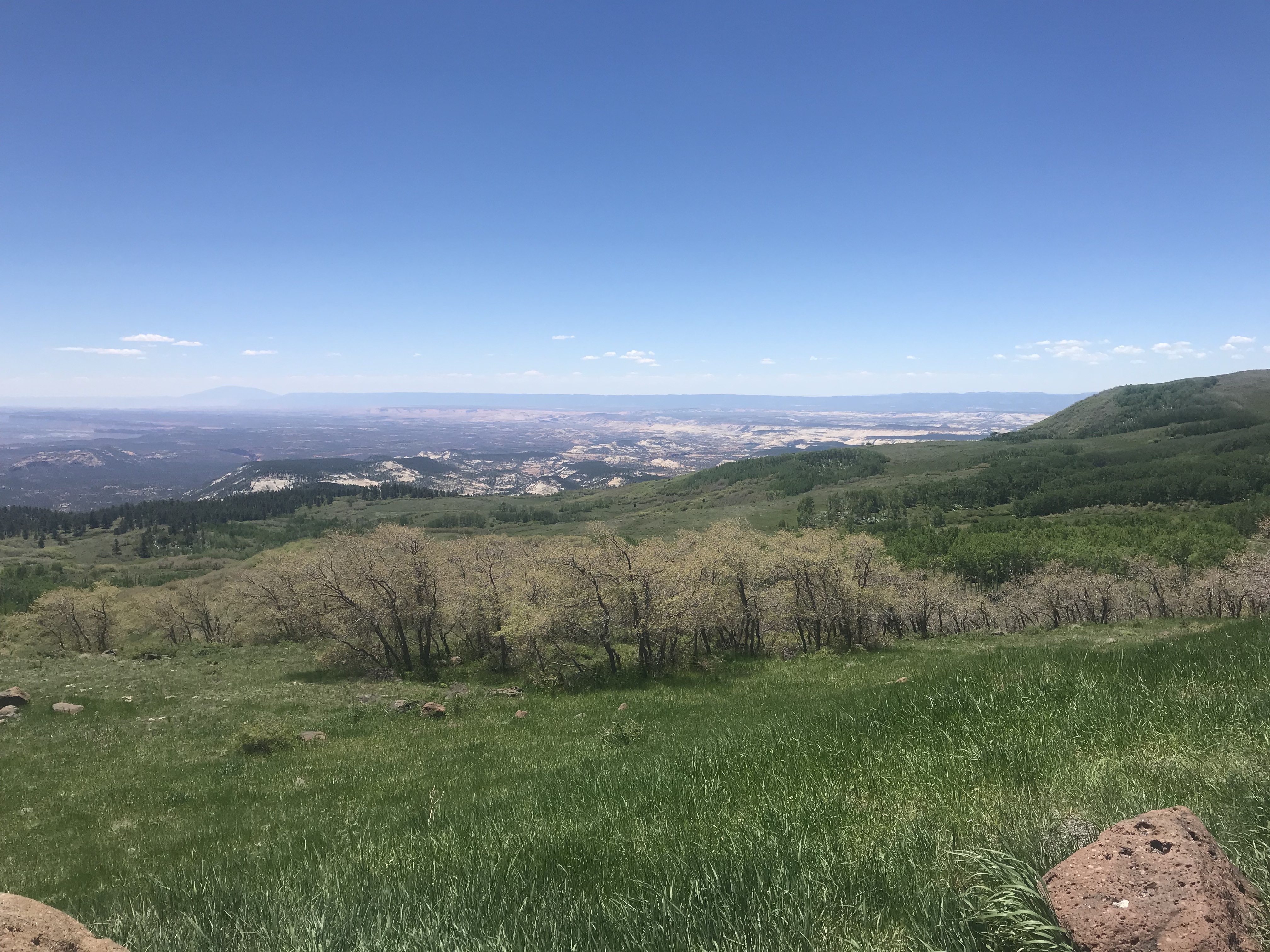It was very cold and windy so I didn’t linger at the viewpoint. All the way up I rode through forests and meadows. The Breaks is where this landscape abruptly becomes a red rock canyon again. When you’re already dizzy, looking at sheer cliffs they stop thousands of feet doesn’t help much.