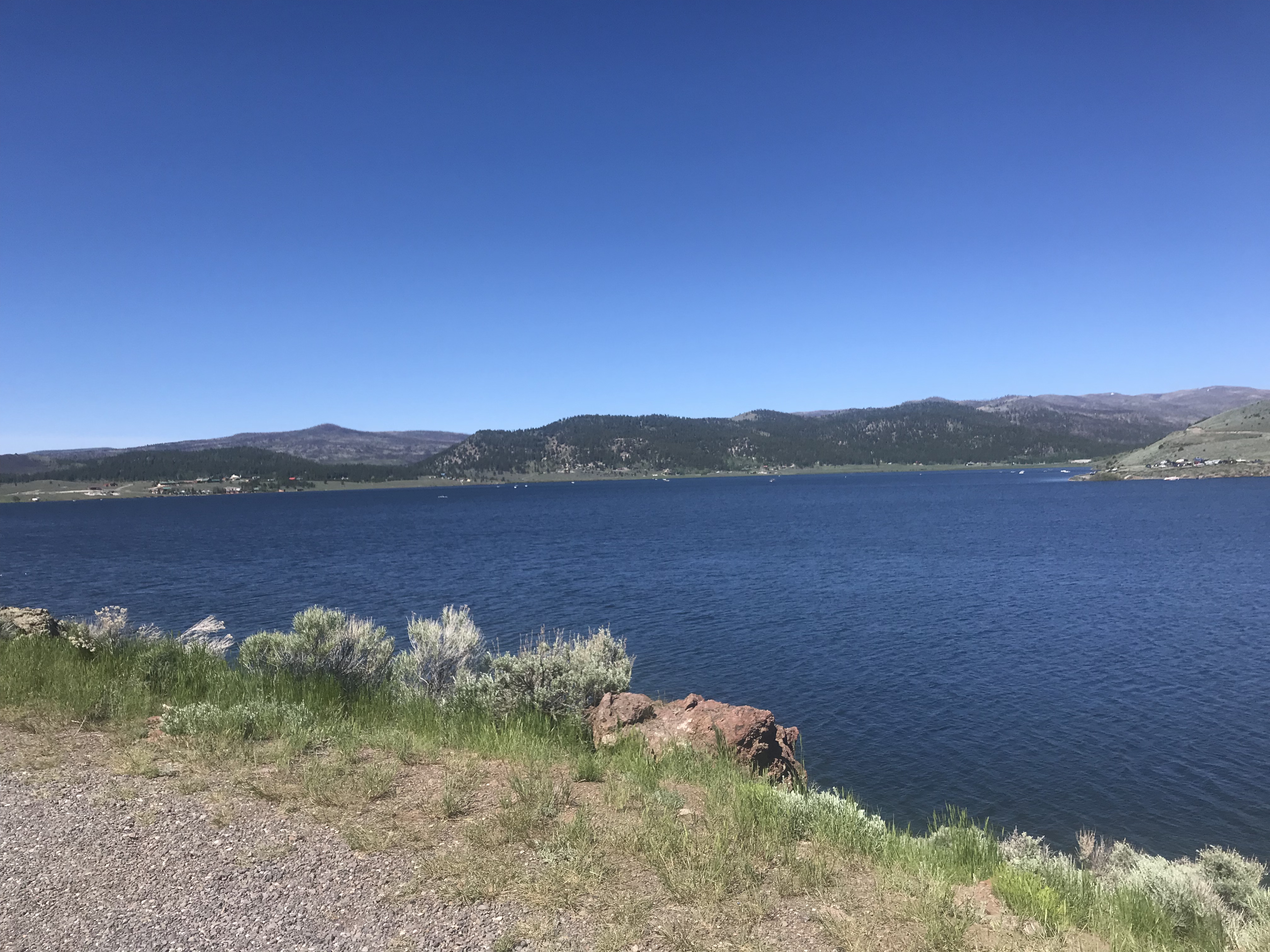 When I got to the lake about 18 miles into the day, I stopped at a general store. When I dismounted I immediately felt a chill. All my climbing had made me oblivious to the fact that it was in the high 40s.