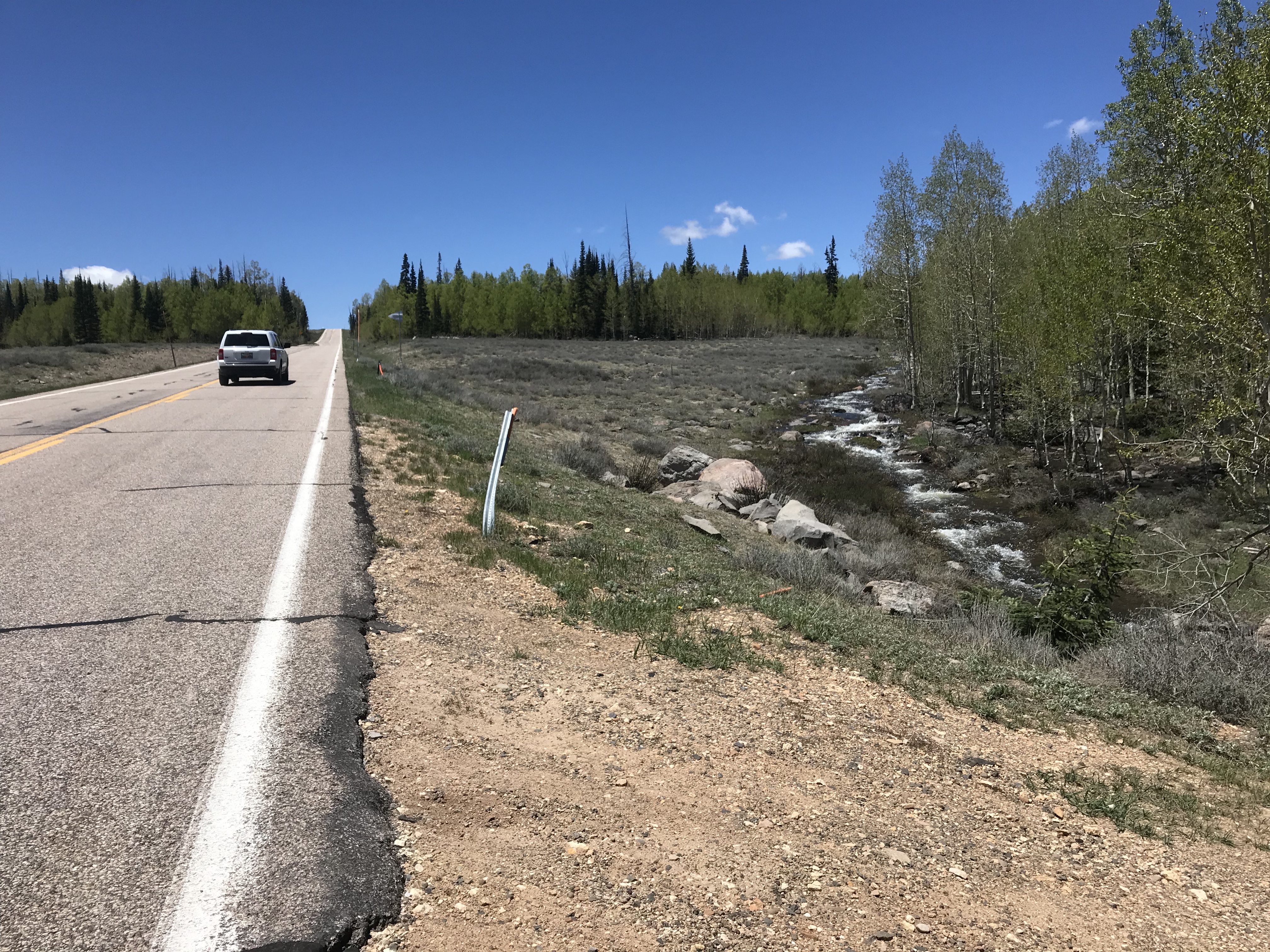 The skies were blue. The scenery wooded. The brooks babbling along the road side were filled with clear snow melt.