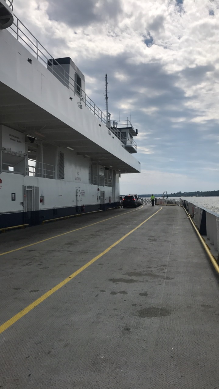I just missed a ferry and waited 20 minutes. The chat with a 60 something guy in a Miata was fun. The ride itself took about 15 minutes. The river was calm and the weather was a comfortable 79 degrees. Twas a lovely cruise.